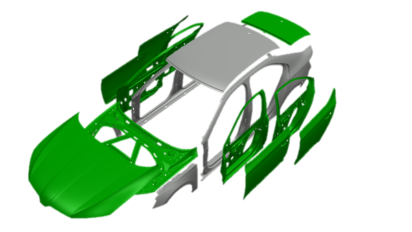 - panelové díly (kapoty, boční dveře, páté dveře)